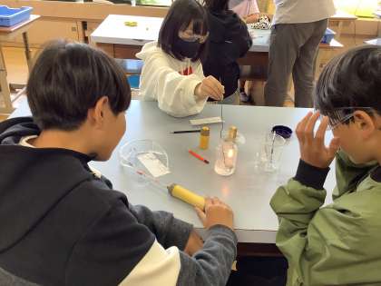 ものが燃える前と、燃えた後の空気中の気体の変化を「気体検知管」を使って調べました。