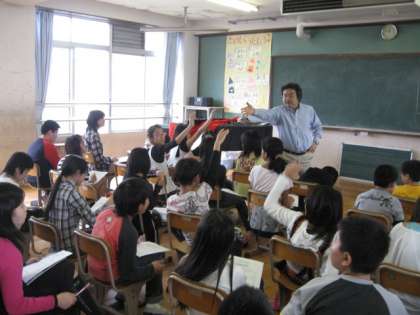 6年生の音楽は,中学校の音楽の専門の先生が来てくれます。