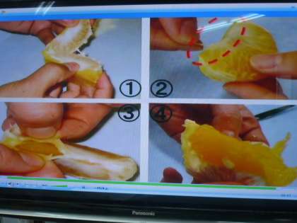 今日の給食は,デザートにあまなつみかんが出ました。