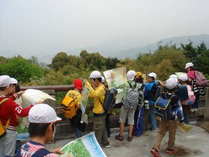山道をみんなで励ましあいながら歩きました。将軍塚の展望台につく頃には,
