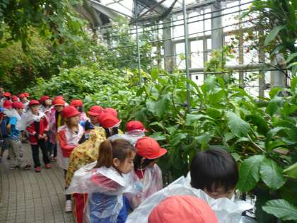 植物園ではいろんな形の植物を見つけて,バナナやパイナップルを見つけて興奮していました。