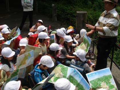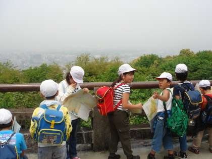 将軍塚では,社会科で使っている京都の地図帳を見ながら,どこに何があるかを