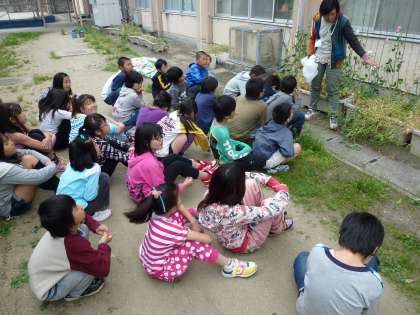今日は夏の暑さに備えて,『緑のカーテン』をつくる活動をしました。