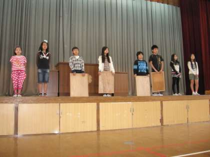 したじき委員会の児童が,登校時に門の前で大きな声であいさつをしています。今年度は特に,あいさつに重点をおきます。今日の朝会でも,委員会の児童が,全校児童に「したじき週間」の取組を紹介してくれました。