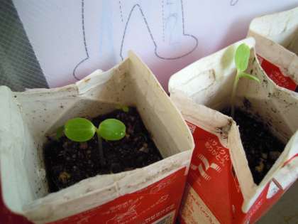 ゴールデンウイーク前に植えたホウセンカとヒマワリの芽がでてきました。
