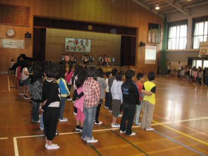4年生は新しく入学してきた1年生に,「世界に一つだけの花」とお迎えの言葉をプレゼントしました。