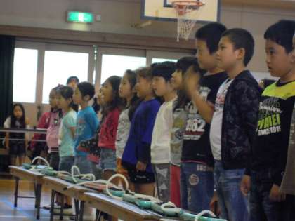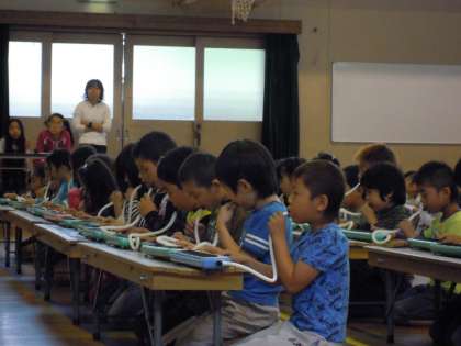 今日はおむかえ集会がありました。2年生は「あたらしいマーチ」を歌とけんばんハーモニカで演奏しました。今日のために,毎日練習してきました。「どきどき」や「わくわく」等の振りも自分たちで考えました。今日の本番は,これまで頑張ってきたことが精一杯出せました。1年生にかっこいい2年生の姿を見てもらうことができました。去年は舞台の上で迎えてもらっていたのですね。大きく成長しました。