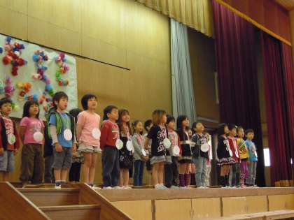 初めての大きい舞台で,少し緊張してしまいましたが,練習してきた言葉も歌も元気に発表することができました。