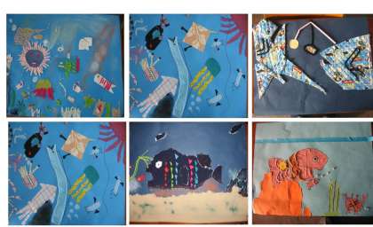 布の性質(ふわふわ,ごわごわ,ひらひら,・・・)や模様を生かして,素敵な作品が仕上がりました。