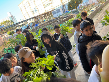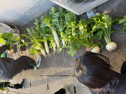大根とカブを植えていたので、収穫して、煮たり焼いたりして食べました。