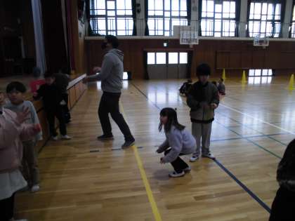 低学年の子どもたちも先生たちも、熱中して遊びました。