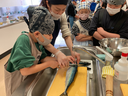 朝、市場で仕入れられた「さば」の料理に挑戦しました。