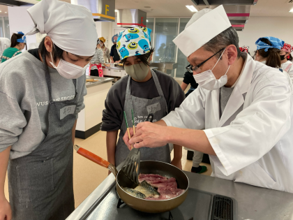 見学の後は、プロの板前さんによる料理教室でした。