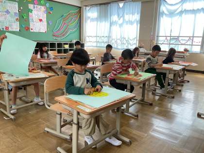 図工の学習で元気いっぱいに「たいよう」の絵を描きました。
