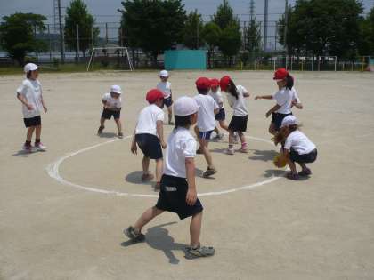 当てられた子も,文句を言わず,枠の外に出て座って応援しています。