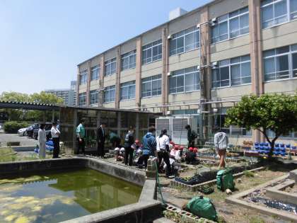 とうもろこしの苗をみんなで植えました。
