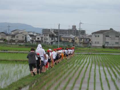 まっすぐに植わった美しい田んぼを見ながら,学校へ戻っていきました。