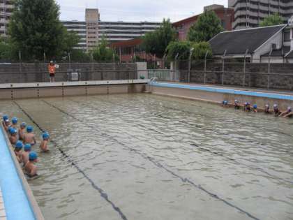 始まる前は大きなプールに少し怖がっていた子もいたようですが,入るととっても喜んでいました。