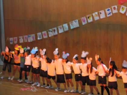 今日は1年生にとっては小学校での初めての学芸会でした。「どうぶつむらのうんどうかい」を演じました。入学して間もない1年生にとって,セリフを覚えるのはとても大変でしたが,毎日頑張って練習をしてきました。