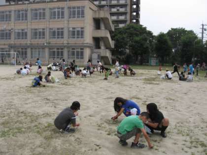 昨日の親子草引きには,たくさんの保護者の方々にご参加いただきありがとうございました!子どもたちも一生懸命草を引き,自分たちのグラウンドに愛情をもっているようでした。『人に愛を,ものに愛を,自分にも愛を』はずっと忘れていません。