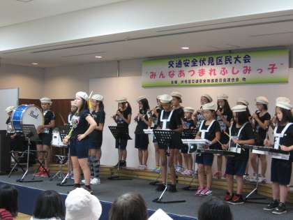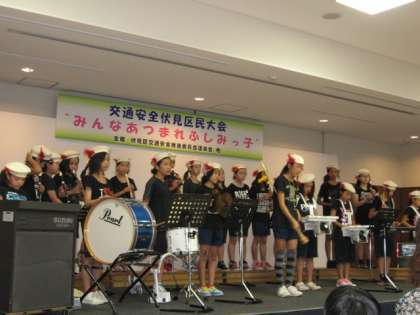 7月8日(日)に交通安全伏見区民大会が伏見区役所で行われました。プログラム最後の演奏だった鼓笛クラブ。本番のステージでは息のあった素晴らしい演奏をすることができました。本当によく頑張りました!一生懸命に演奏する姿はとても素敵でした。
