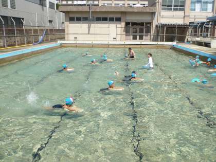 1年生のプールはこれまで延期になることなく,入れていましたが,これまでカラッと晴れたことがなく,少しひんやりと寒い中でのプールばかりでした。
