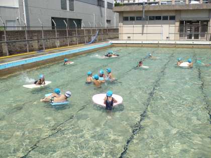 らっこさんや,ビート板を使ったバタ足練習をしました。