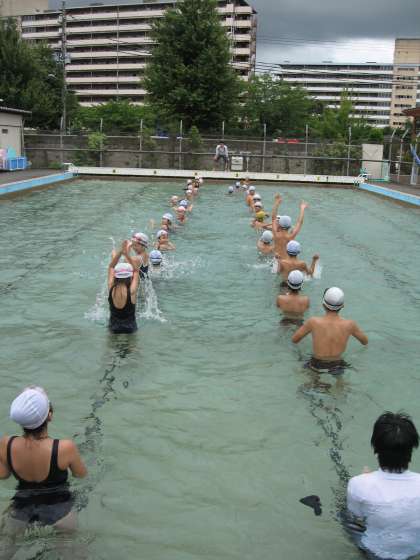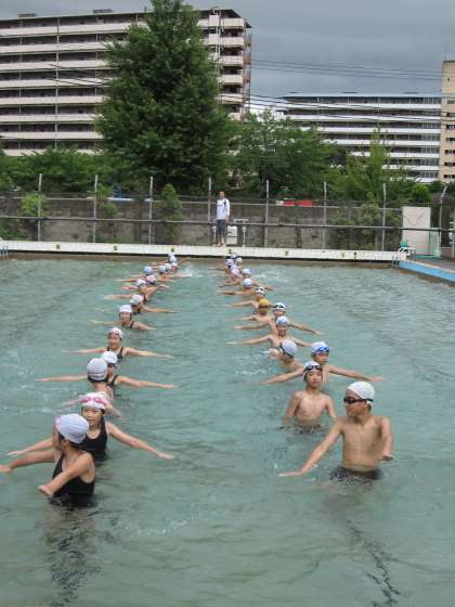 朝は大雨が降っていましたが,授業の前には雨も上がり,子どもたちの水泳学習への意欲に天も味方してくれたようです。