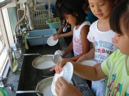 最後に、家庭科室でお皿を洗って終了です。おいしく楽しい学習になりました。
