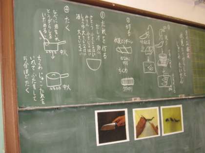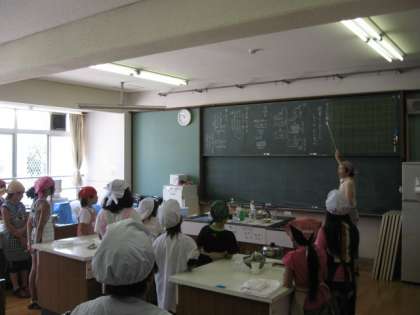 4年生は,総合的な学習で,自分たちで作った「伏見甘長とうがらし」の調理をしました。栄養教諭の堀井先生に作り方を教えてもらいました。