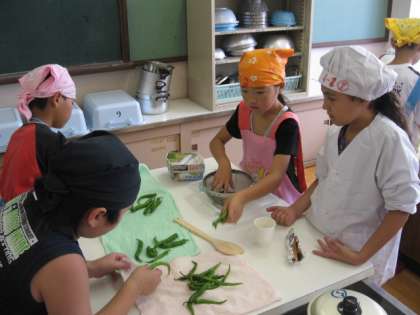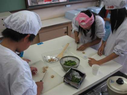 4年生は,みさきの家で野外炊事をするので,一人ずつ包丁の使い方を学習しながら作りました。