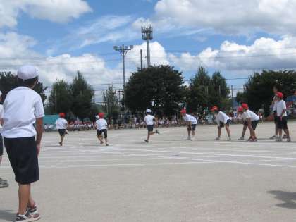 応援団の大きな応援の中,50mを走り抜きました。