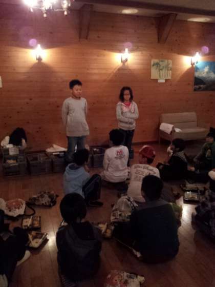 野外炊事で鳥すき焼きを作る時間まで,室内でウノ大会をすることになりました。