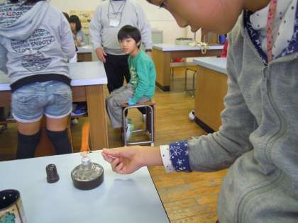 しっかりと話が聞けていたので,安全に全員がマッチをすり,アルコールランプに火をつけそして火を消すことができました。