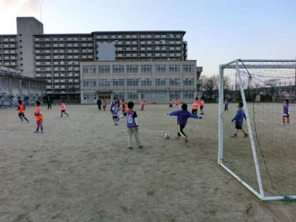 寒い中,子どもたちは,元気にサッカーを思い切り楽しみました。