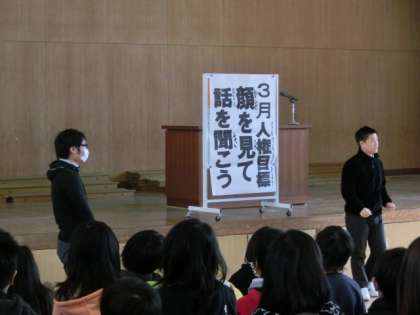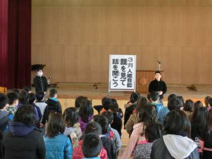 3月の人権目標は「顔を見て 話を聞こう」です。
