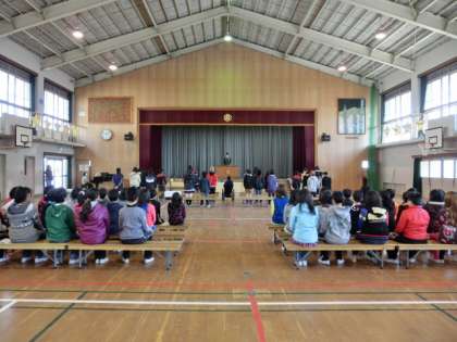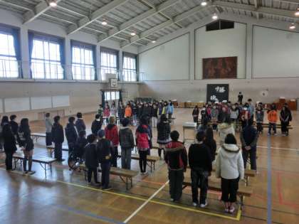 5,6年生合同で卒業式練習をしました。
