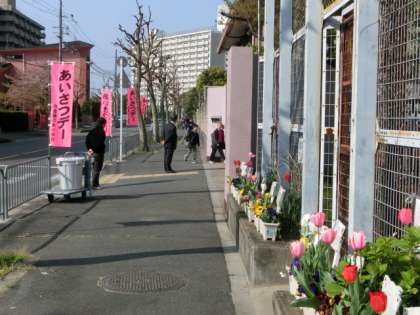 11月に植えたチューリップも満開で子どもたちを出迎えてくれています。