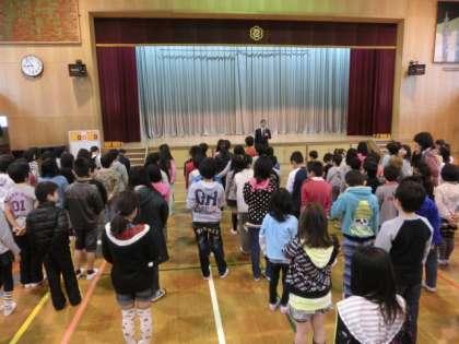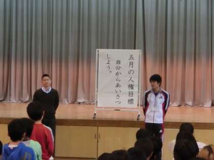 憲法月間のお話の後,5月の人権月間「自分からあいさつしよう」のお話もありました。