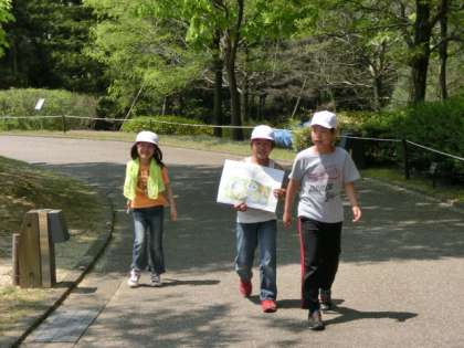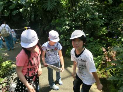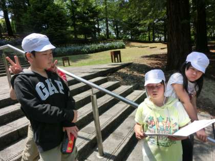 クイズラリーはグループごとに自由にコースを決定し、植物園内にちりばめられている問題を見つけながら進んでいきます。問題は12問。グループシートを持ちながら問題を探す姿は、移動の疲れを感じさせない元気な姿でした。
