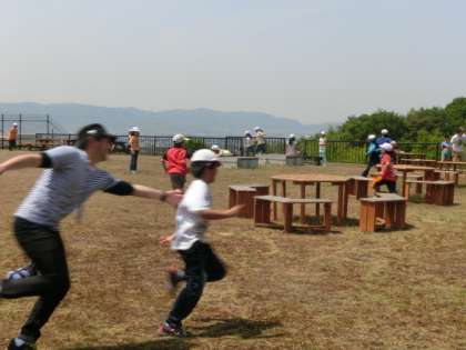 昼食の後は広場でレクレーションの時間です。ベンチに座ってお話を楽しんだり、鬼ごっこをするなどそれぞれに楽しい時間を過ごしました。帰りの移動の体力がなくなってしまうのではないかと心配してしまうほど、レクレーションの時間を楽しめました。