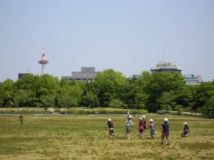 お弁当の後は、梅小路公園内のツツジのきれいな広場で