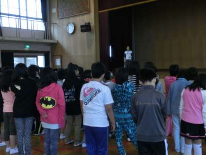 今日は体育館でおむかえ集会の練習をしました。立ち方・座り方・歩き方などの練習もしました。歌も体育館で歌うのは初めてでしたが,よく声は出ていました。1年生に喜んでもらえるといいですね。