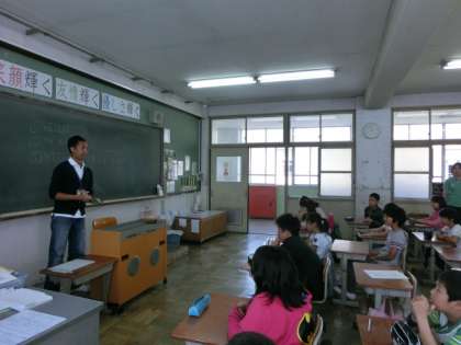 今日は英語の時間に初めてALTのデリック・マカタンタン先生が来てくださいました。先生の自己紹介でカリフォルニアのことや,好きなもののことを聞いたあとは,自分たちの自己紹介です。「Hello.My name is〜。Nice to meet you.」の言い方の練習をしたあと,全員が自己紹介をしました。みんなとても上手に言うことができ,マカタンタン先生もたくさんほめてくださいました。