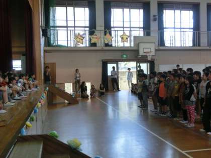 おむかえ集会がありました。5年生は各学年のトップバッターでした。少し緊張しながらも堂々と歌うことができました。練習の成果が出せたのではないでしょうか。とてもいい歌声でした。