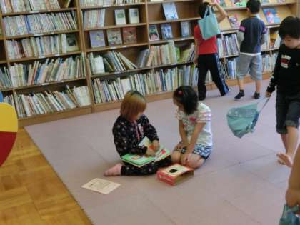 読み聞かせの後は、借りたい本を選ぶ時間です。