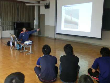 伏見消防署の署員さんから,止血の仕方,心肺蘇生法,AEDの使い方等を学びました。