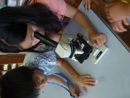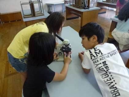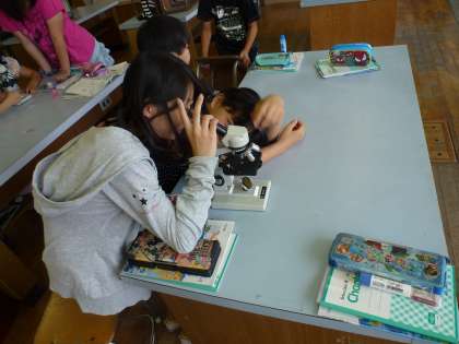 顕微鏡のそれぞれのパーツの名前を調べたり,実際に顕微鏡を使って小さな生物を見たりしました。