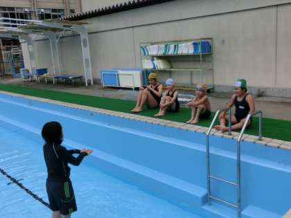 今年初めてのプールということで、入水の合図や、プールサイドや水中での約束事を確認しながら入りました。
