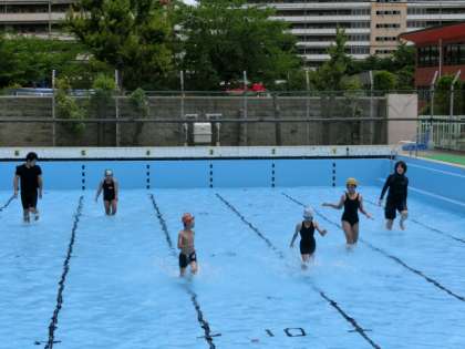 新しくペンキが塗られたプールで、子どもたちは気持ちよく泳いでいました。